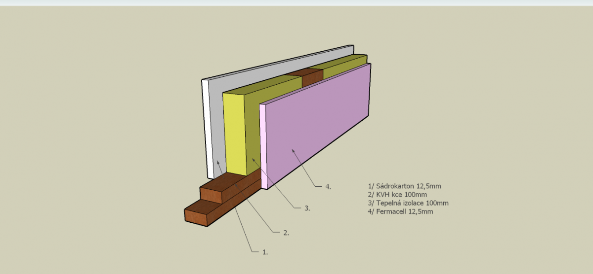 Nosné – nenosné stěny přenášejí zatížení, které vznikají působením zatížení, z její hmotnosti a břemen na nich zavěšených. Skladba stěn je tvořena z dřevěných konstrukčních KVH hranolů vyplněný zvukovou izolací opláštěný z obou stran sádrokartonem nebo Fermacell.